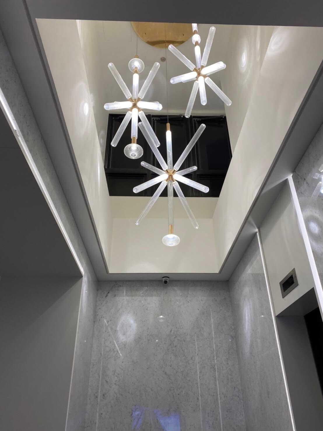 極簡白派空間,搭配輕奢風格燈具,完全無違和。