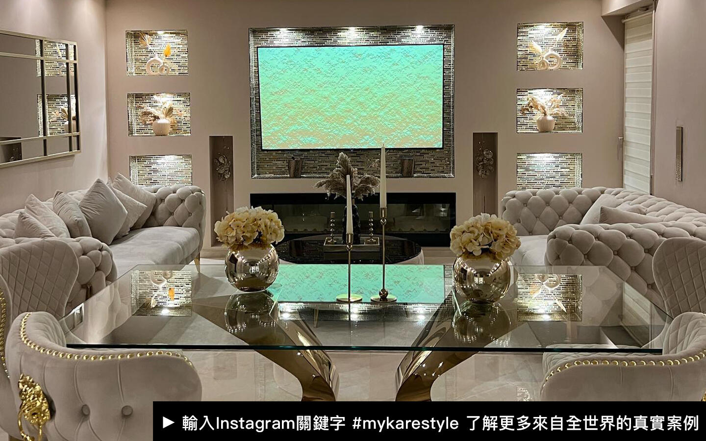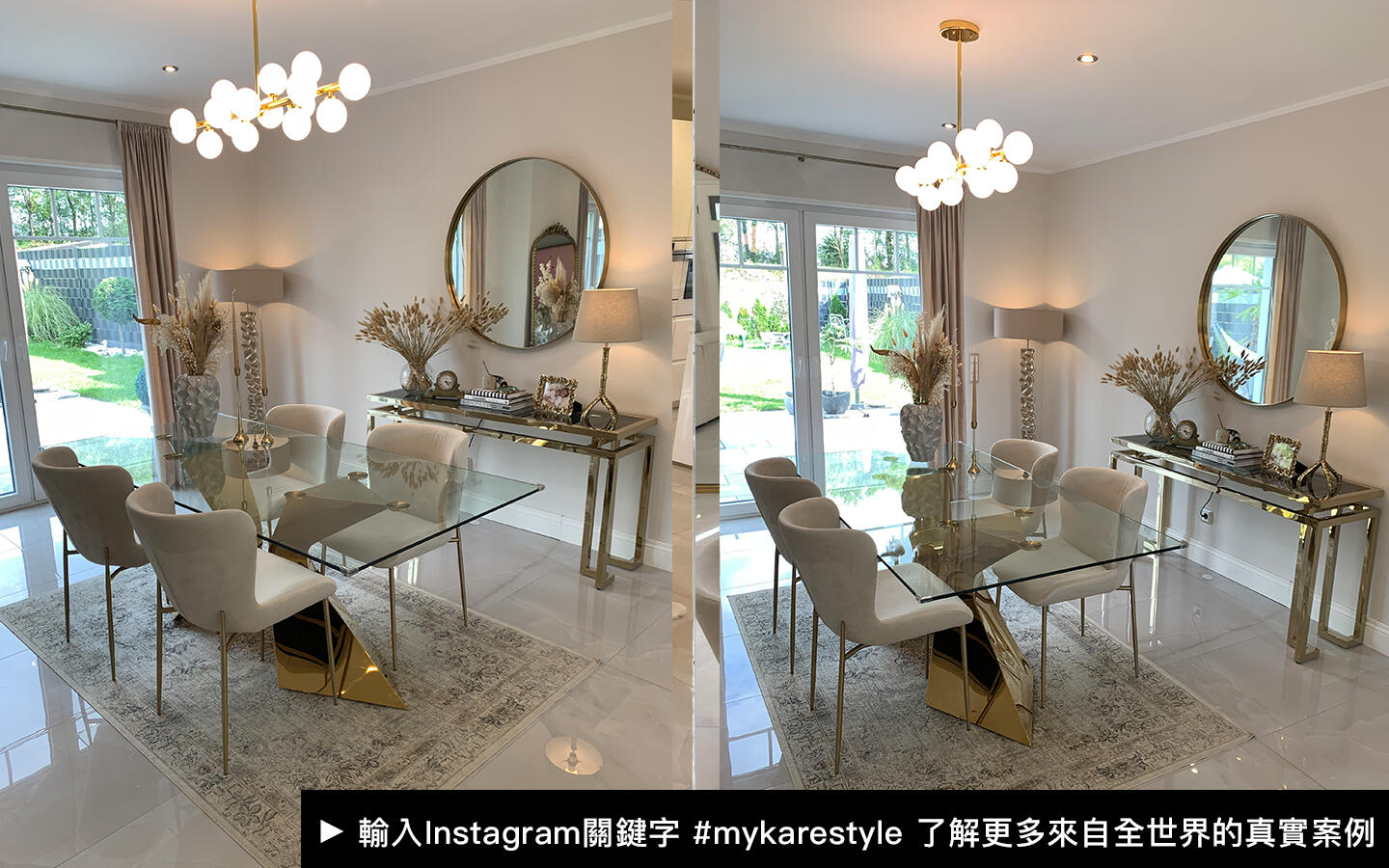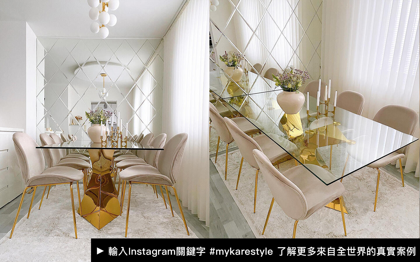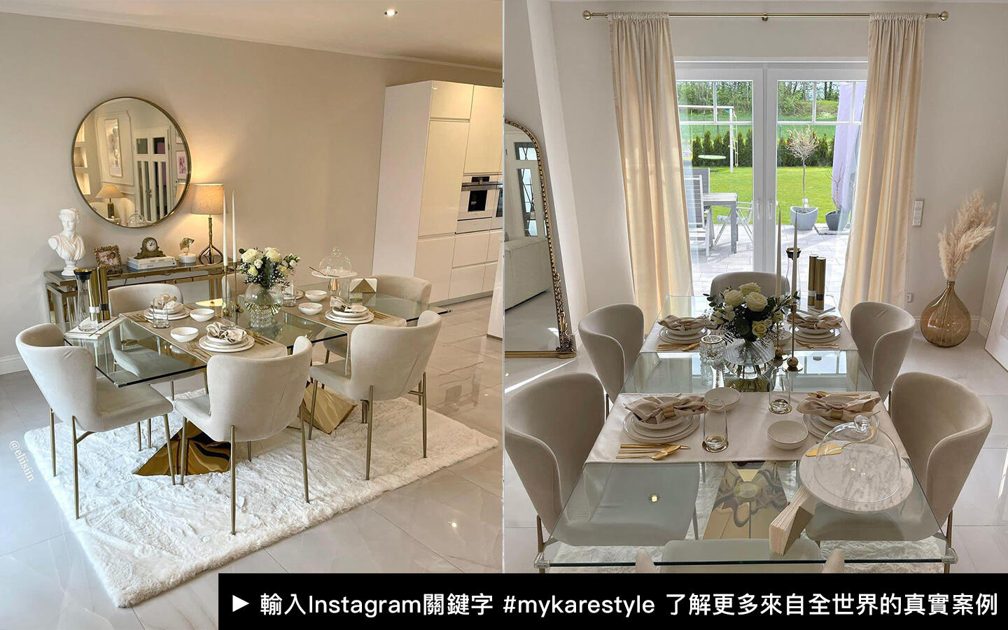 - 金色是近年的流行色,既奢華經典又溫暖柔和,無論搭配淺灰色時尚空間或白色、淡粉紅等女性化空間,這款餐桌都能華麗映襯,適合各種風格
